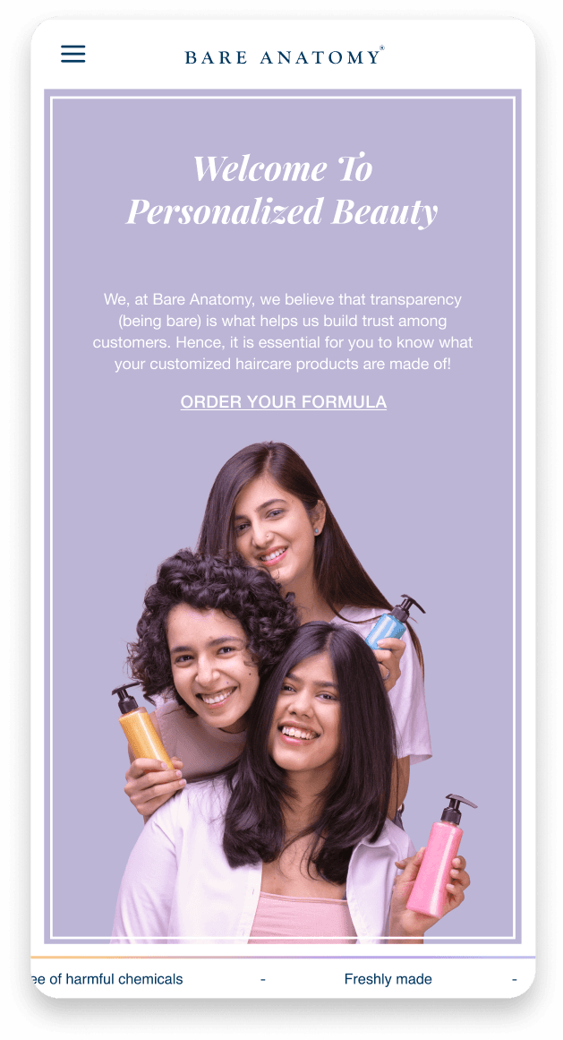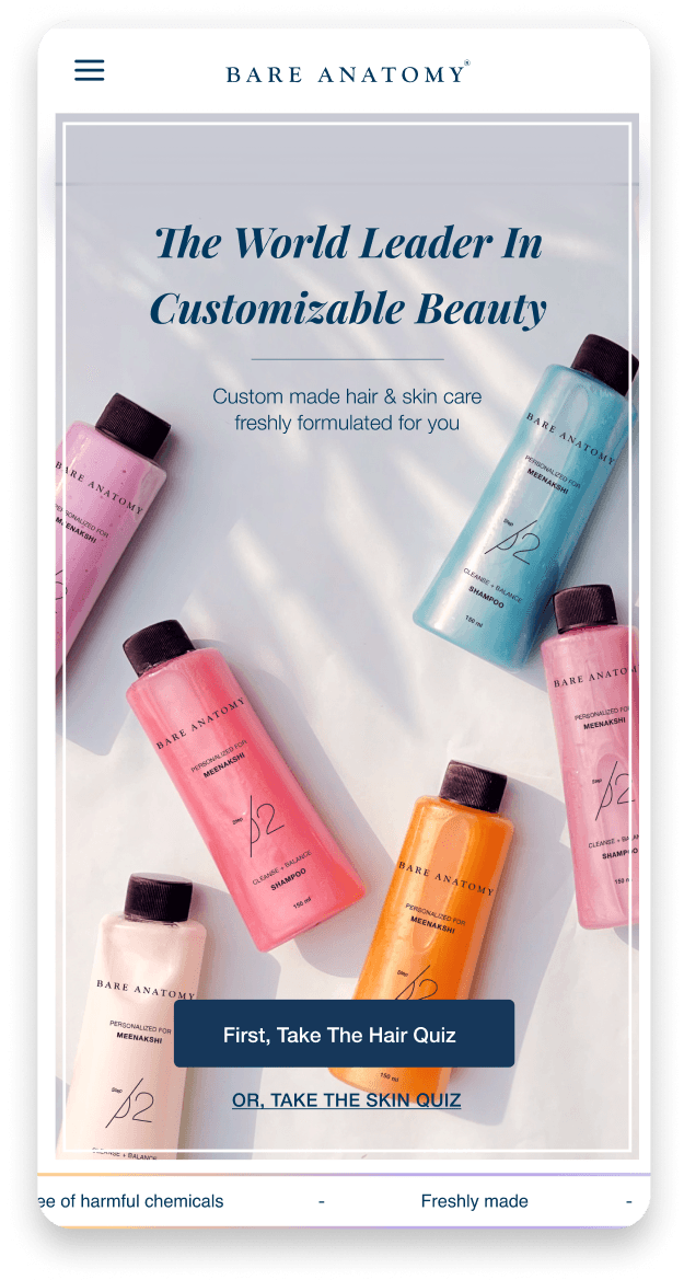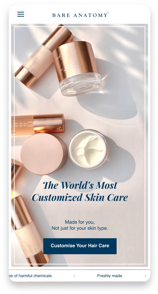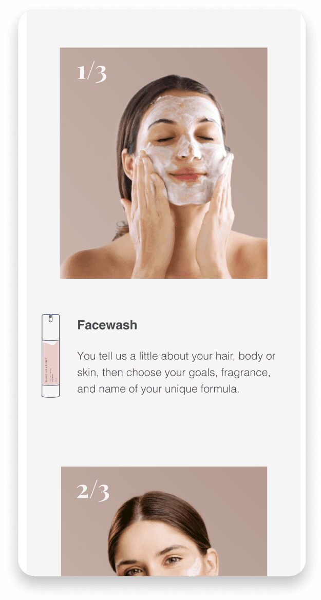 Bare Anatomy is a hair care brand that offers personalized hair care solutions tailored to each individual's hair type and needs. The brand's philosophy is based on the idea that everyone's hair is unique and requires customized care. To achieve this, Bare Anatomy uses a proprietary algorithm to analyze each customer's hair profile and creates personalized formulations using natural and high-quality ingredients. The brand's products include shampoos, conditioners, and hair masks, all of which are free from harmful chemicals and additives.