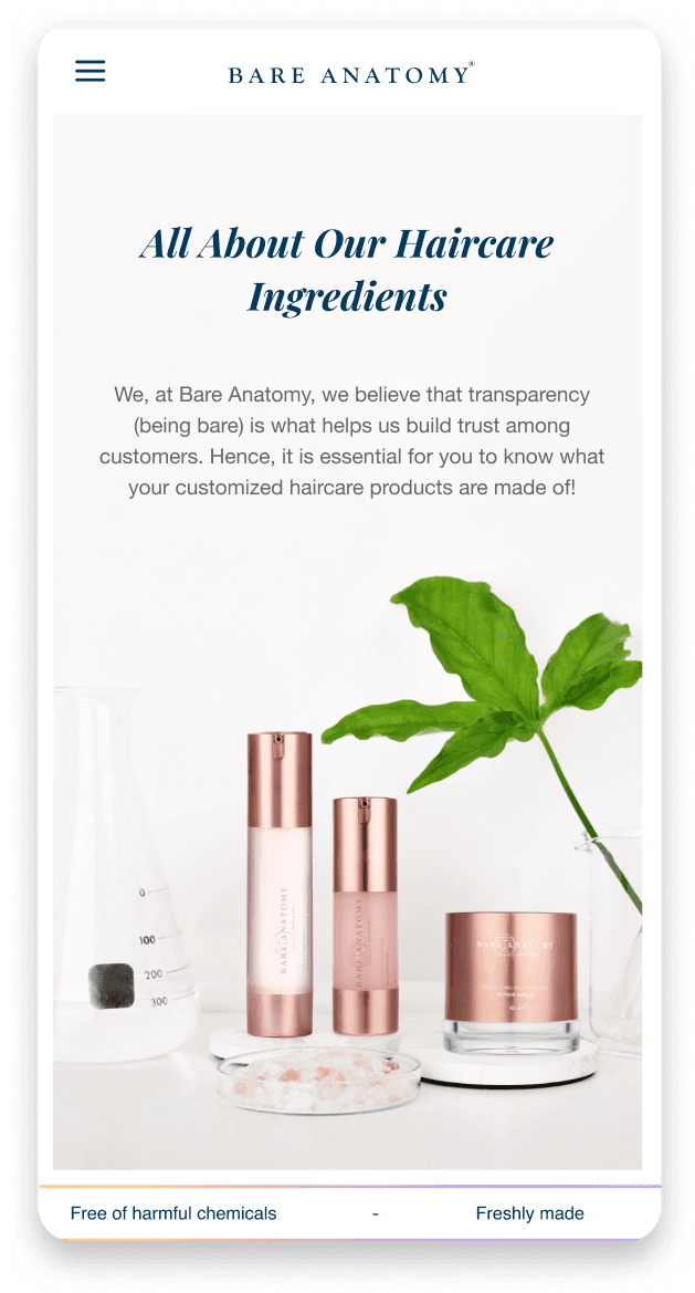 Bare Anatomy aims to provide a personalized and natural alternative to mass-produced hair care products, helping customers achieve healthier and more beautiful hair. The brand has gained popularity among consumers who are looking for a more personalized and natural approach to hair care.