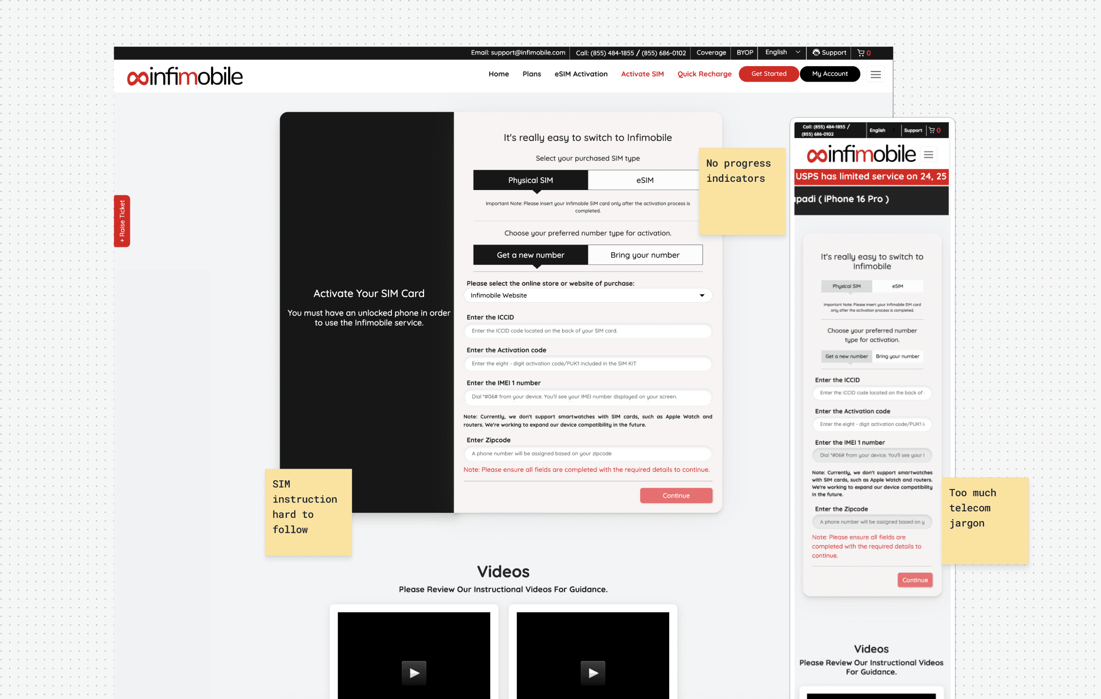 Remove distractions like unnecessary promotional banners on task pages & make essential actions (e.g., porting SIM, activating) more prominent & easy to complete.