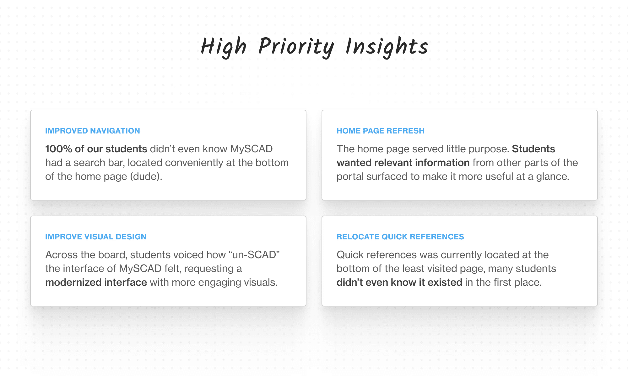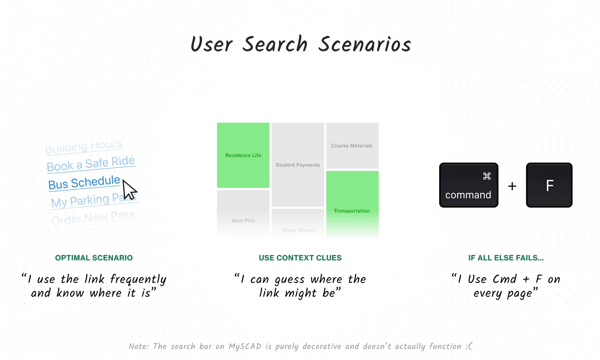 The key takeaway from the test was that users, including those with varying levels of tech proficiency, struggled to find important links across the website, even those they would frequently need. This points to the outdated navigation structure and the challenges users faced when trying to locate relevant information amidst a sea of links.