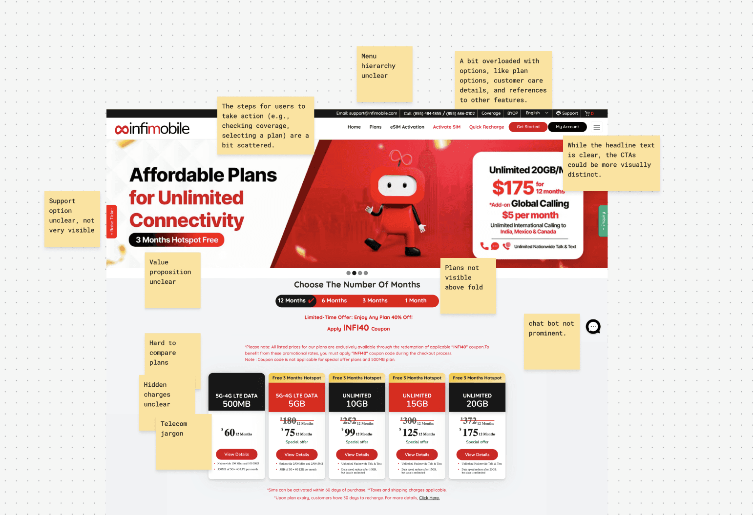 Infimobile, a fast-growing prepaid telecom provider operating on premium US networks, had a functional but frustrating digital presence. Telecom information is dense; the goal is not to remove it, but reveal it at the right time.